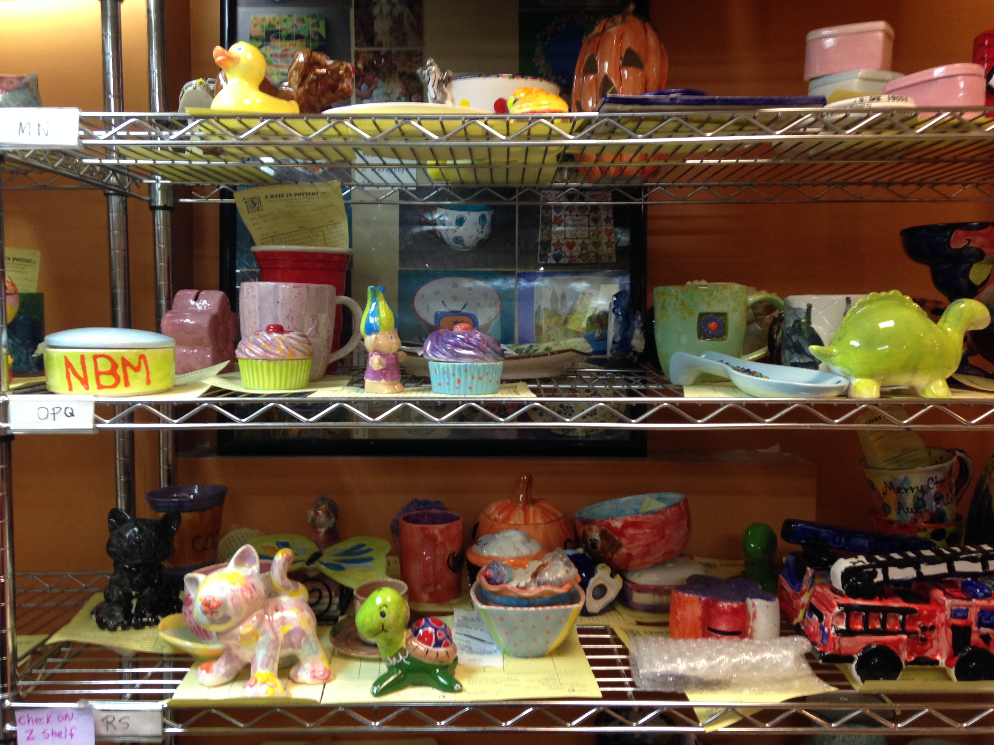 Step one of your creative adventure: choose the piece you want to paint. As you enter the shop, shelves of unpainted pottery line the walls, in every shape and variety imaginable. Coffee mugs, platters, piggy banks, vases, small holiday ornaments- just about anything you can think of. The hardest part of your day will be deciding which piece to paint.