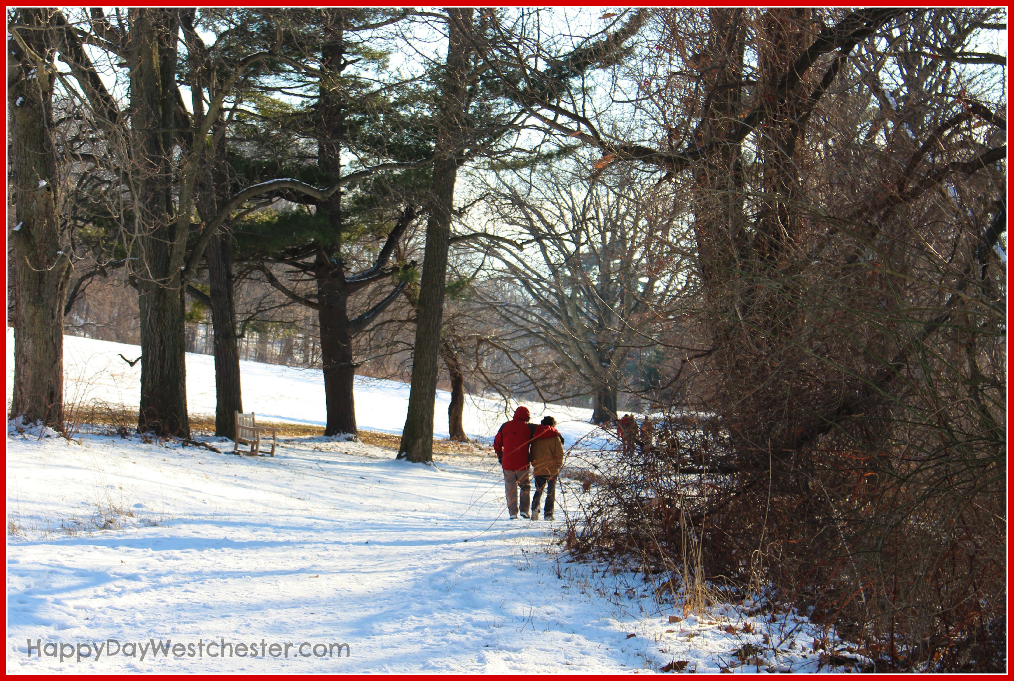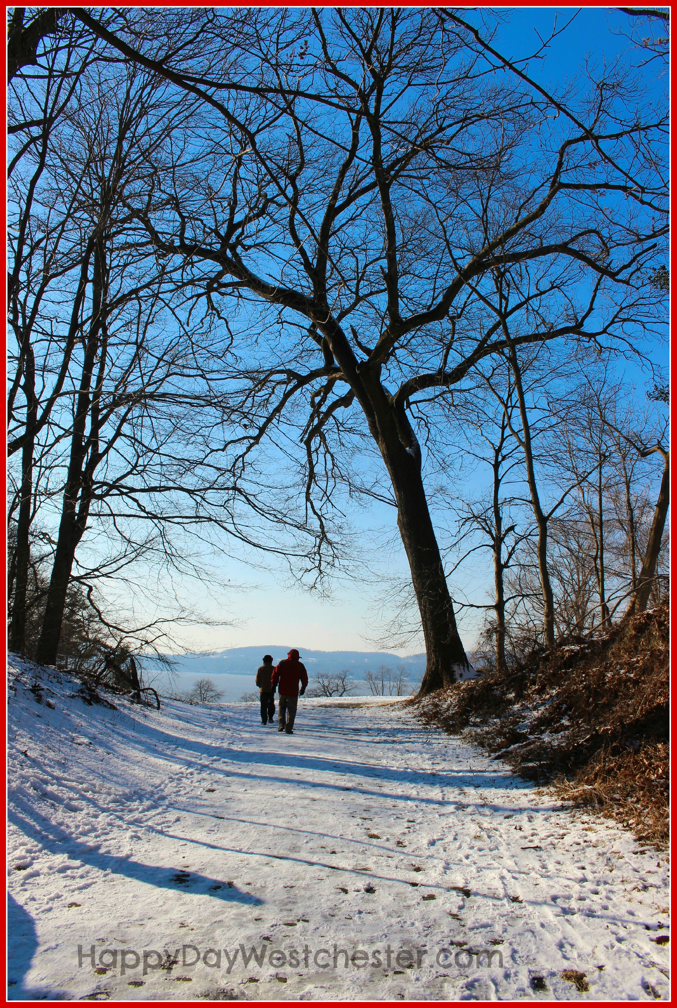 As you make your way over the first ridge, and spot the Hudson in front of you, you’ll also see the Tappan Zee Bridge off in the distance to the left. I was surprised to discover that also just over this ridge is an excellent sledding hill. The river at the bottom must add to the excitement of sledding down this huge slope. Keep this in mind for the next snow storm (currently underway as I post this)!