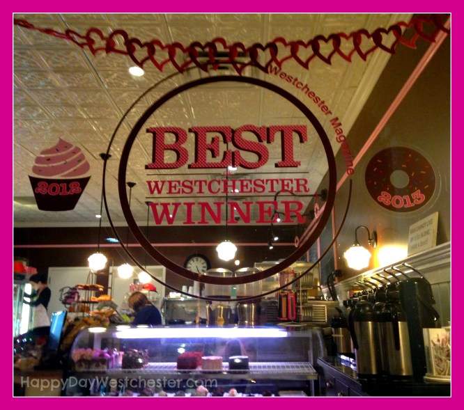 You know that big, beautiful “Best of Westchester” seal, pictured up at the top of this post? When you see that seal out in front of a shop, it makes you want to go in, right? (Pictured above: Beascakes Bakery in Armonk – winner of the Best Donuts in Westchester for 2013, and the Best Cupcakes in 2012.)