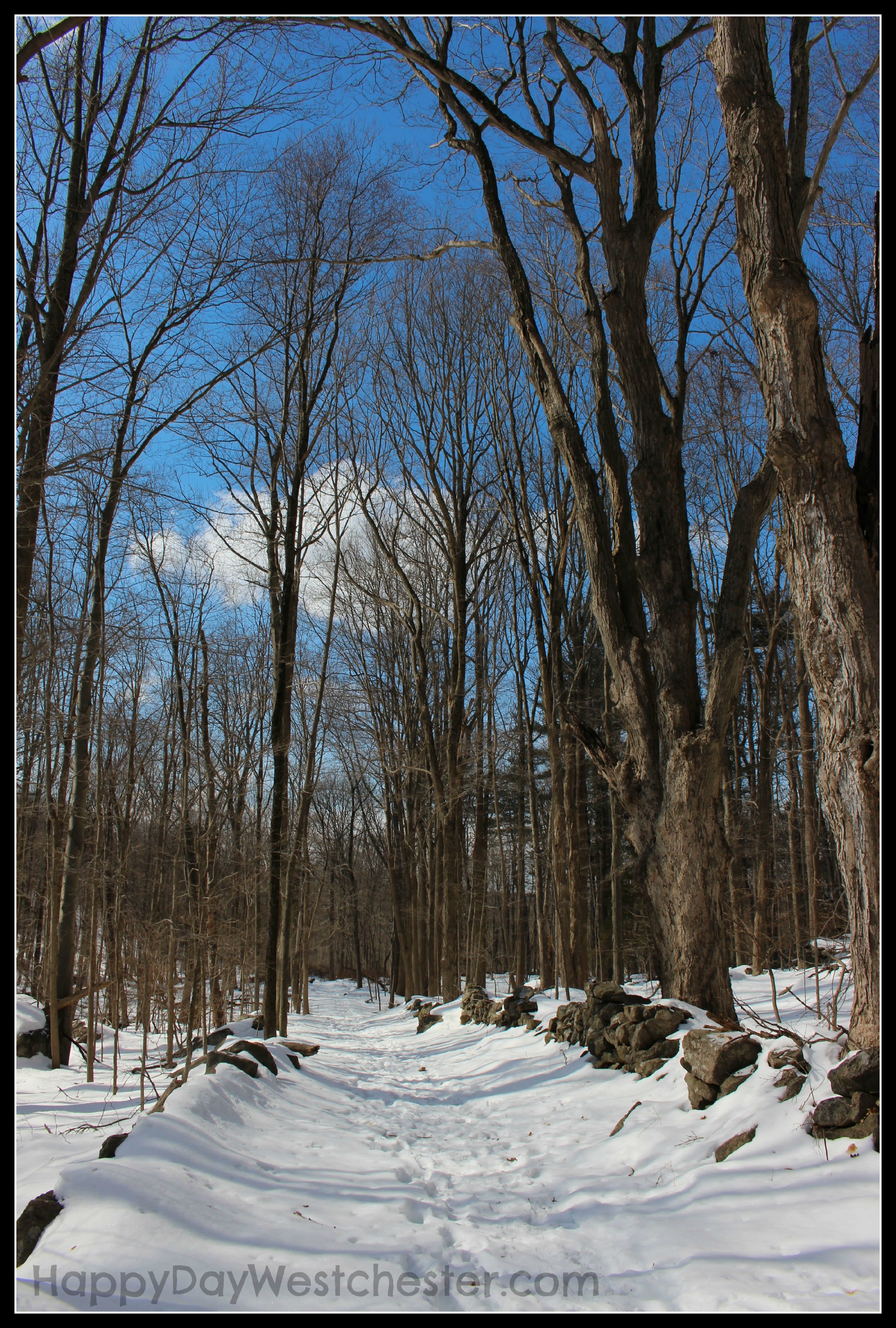 This month it was a little challenging to find a day that was not hailing ice, dropping a foot of snow, or immersed in Polar Vortex winds, but we finally did it – we found a day last weekend that was sunny and warm(ish), with no chance of precipitation of any kind. You gotta jump right on those days when they happen in winter, and head outside for a hike! There happened to be a nature program going on at Ward Pound Ridge Reservation, so we decided to head there and hike the park after the program. (read about our Maple Sugar Adventure – and see some great pictures – here.)